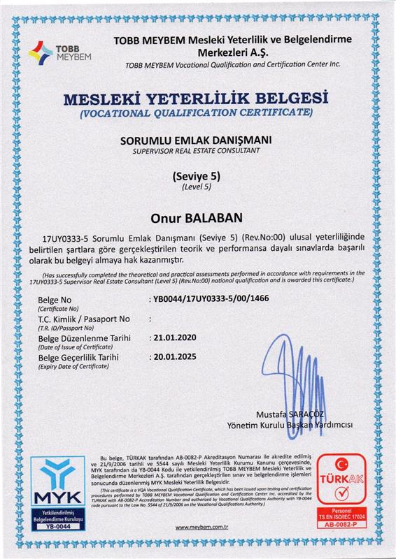 Sn Onur Balaban a gayrimenkul danışmanlığında hem alım hem satımda geniş portvöyü ile çok hızlı sonuçlar verdiği için kendisine başarılar diler ve teşekkür ederim başarıların daim olsun.