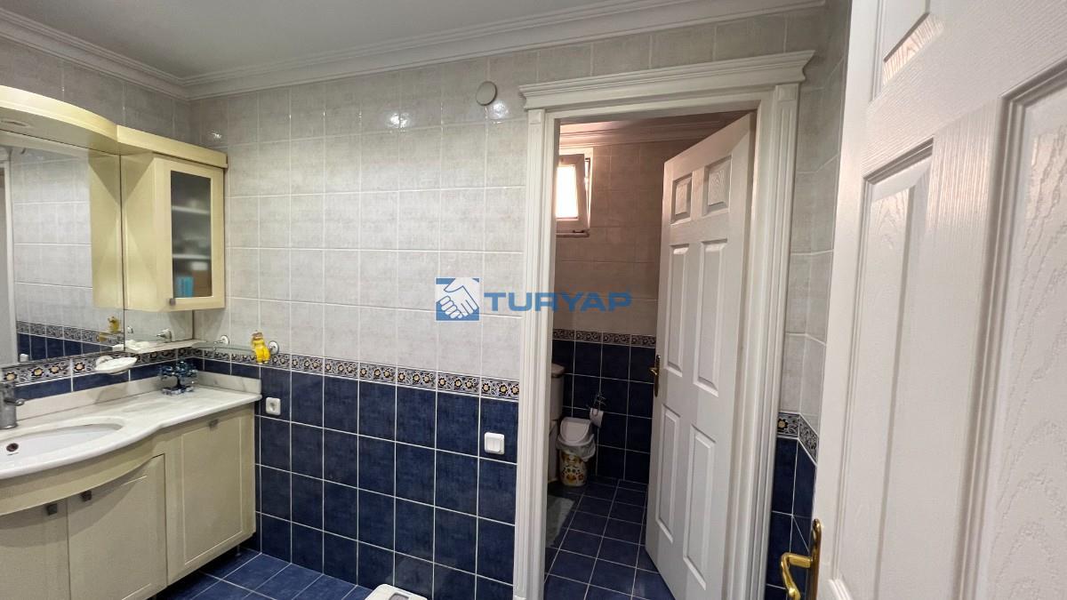 -1 Kat: 145 m2 lik çok büyük bir şömineli salon ve 3 balkon ve banyo wc