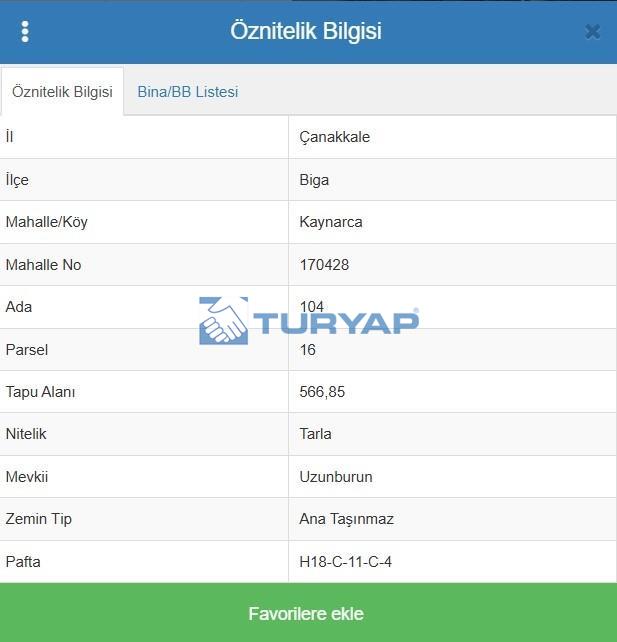 ÇANAKKALE BİGA KAYNARCA KÖYÜ 568M2 SATILIK FIRSAT TARLA