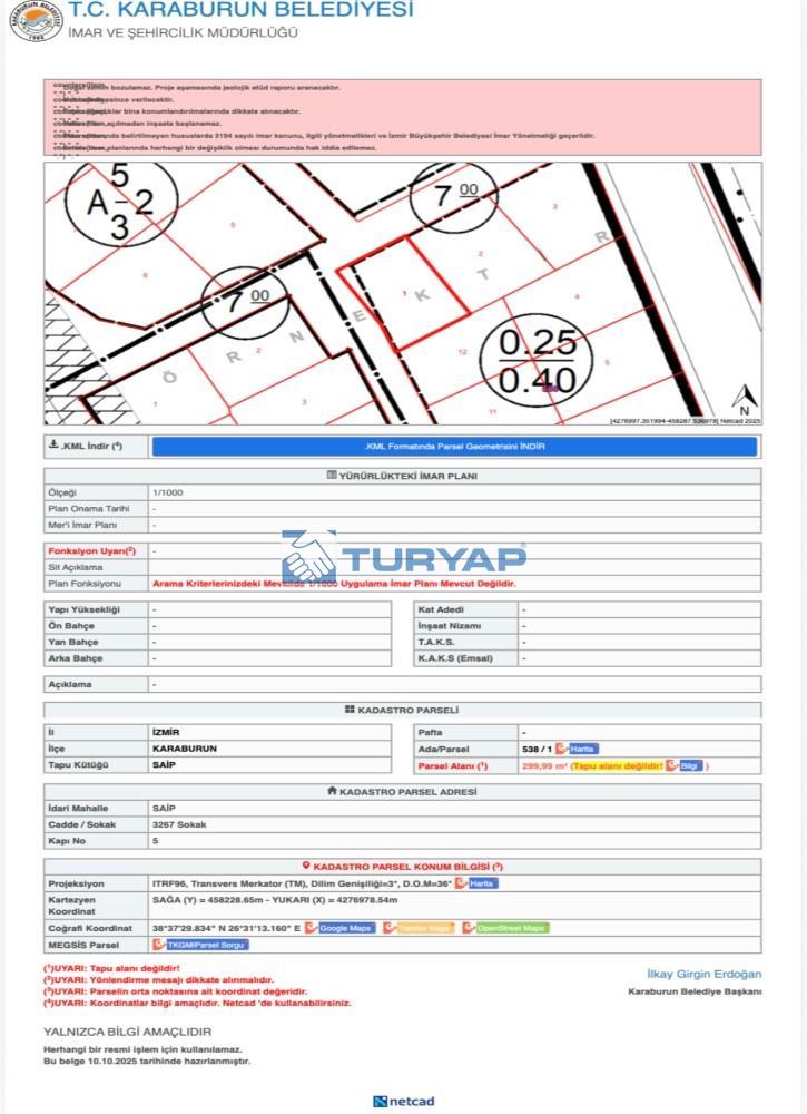 İzmir’in gözde bölgelerinden Karaburun Saip Mahallesi’nde yer alan 300 m² imarlı arsamız ;