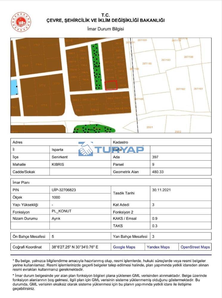 Isparta/Senirkent/Kıbrıs Mahallesi’nde;