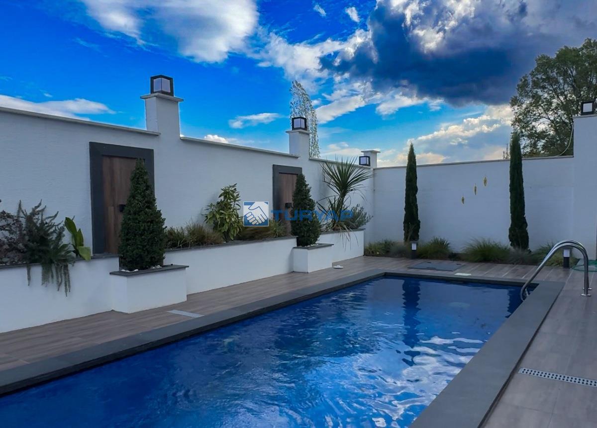 VİLLANIN BAHÇESİNDE BULUNAN ÖZEL HAVUZ, GÜNEŞİN VE DOĞANIN KEYFİNİ ÇIKARMANIZ İÇİN MÜKEMMEL BİR ALAN SUNAR.