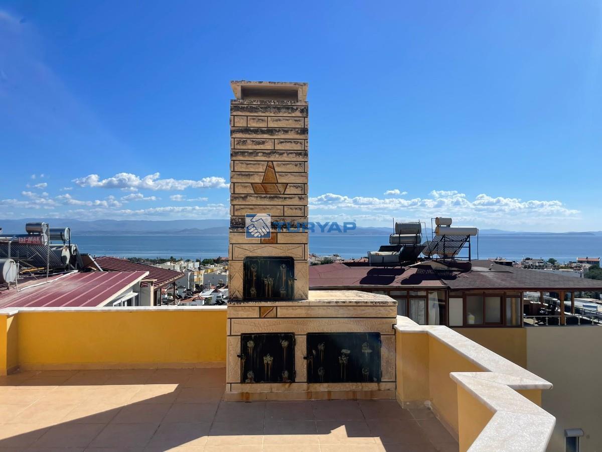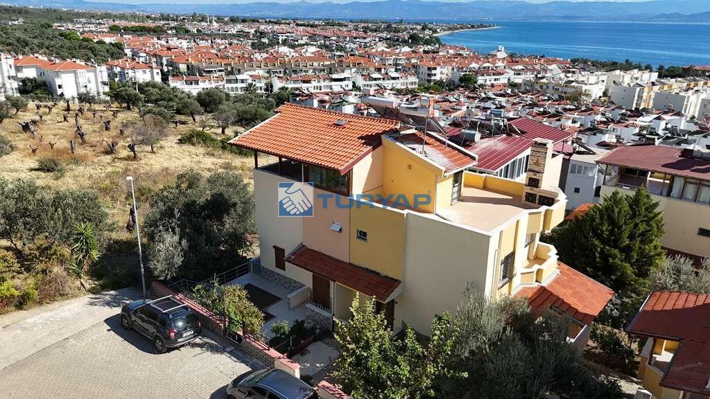 Kazdağı Sitesi’nin huzurlu atmosferinde, doğa, havuz ve deniz manzarasına sahip brüt 235 m², net 125 m² kullanım alanına sahip 3+2 bu özel villa sizleri bekliyor. Yaz–kış oturuma uygun olan villada ısınma altyapısı hazır olup, geniş verandası ve barbeküsüyle keyifli yaşam alanları sunmaktadır. Terasında deniz, doğa ve havuz manzarasının tadını çıkarabileceğiniz ikinci bir barbekü alanı da mevcuttur. Mülkün girişinde 15 m² bahçe kullanımı ve yan cephede ek bahçe alanı bulunmaktadır. Kat Planı: Giriş Katı: Salon, açık mutfak, WC ve veranda 1. Kat: 3 oda (birisi balkonlu ve deniz manzaralı), ortak banyo 2. Kat: Teras, manzara ve barbekü alanı Giriş Altı Kat: Salon, açık mutfak, banyo, veranda ve kiler alanı Alt kat bölümü istenirse 1+0 olarak ya da küçük bir tadilatla 1+1 daireye dönüştürülerek kiraya verilebilir. Sitede bu şekilde düzenlenmiş emsalleri bulunmaktadır. Doğa ile iç içe, güvenli, havuzlu site yaşamı arayanlar için eşsiz bir fırsat!