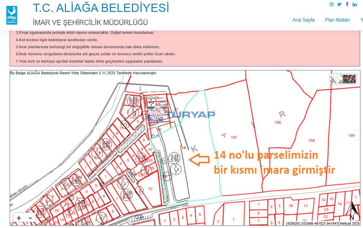 (İlan resimlerimizde imar durumu görünmekte olup, Detay için Aliağa Belediyesi E-İMAR internet sayfasına bakılabilir.)