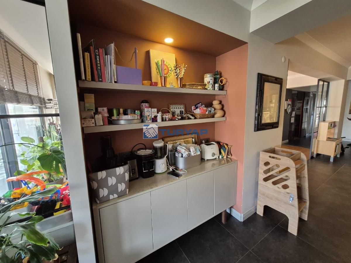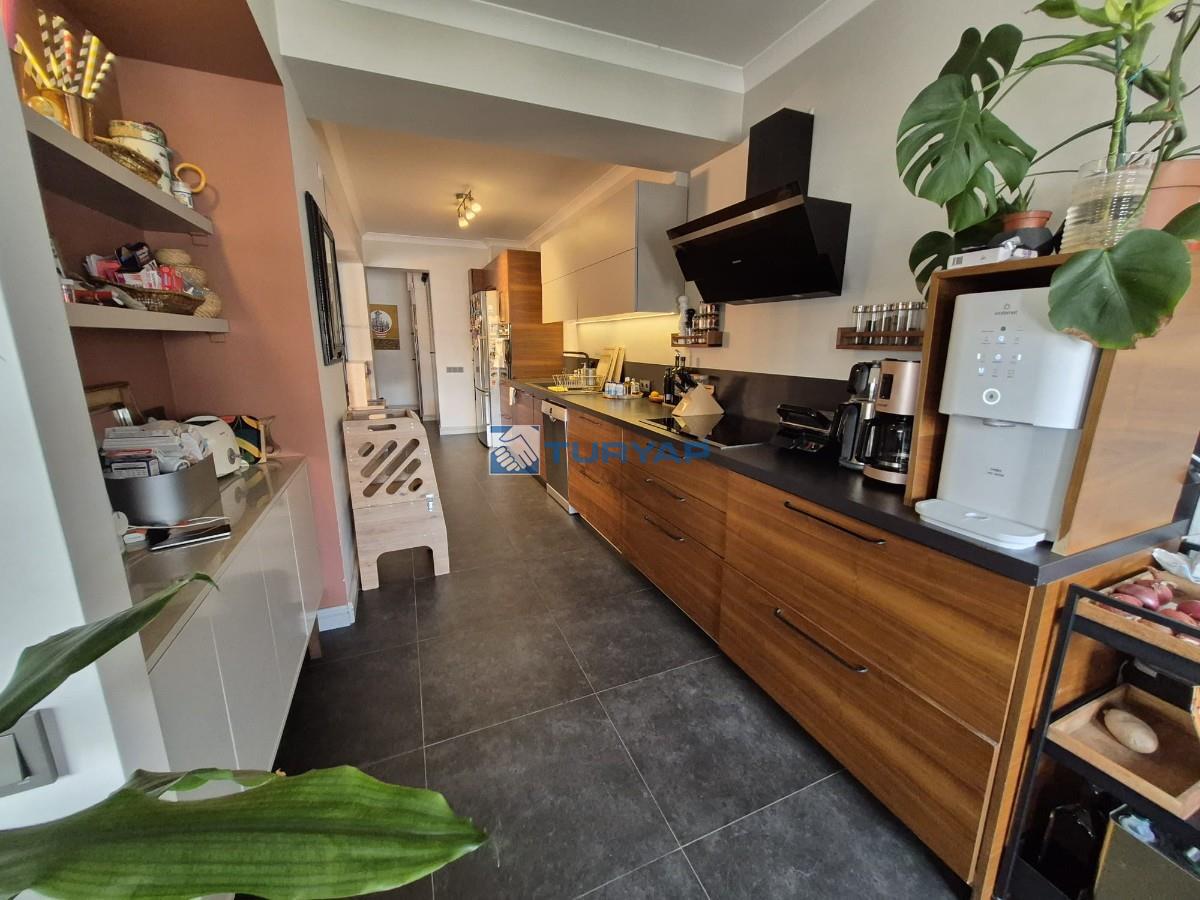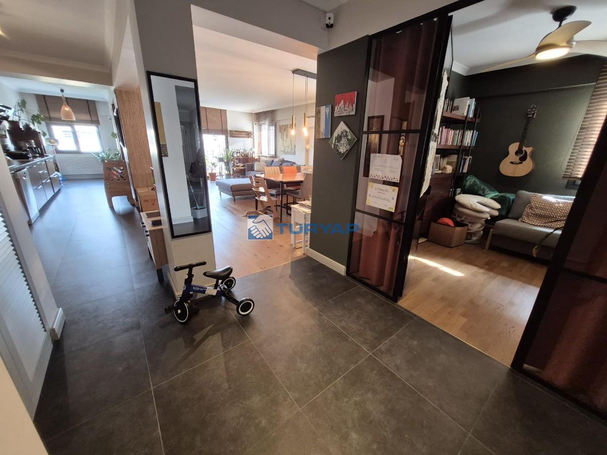Sahile 250 metre mesafede, Girne Bulvarı üzerinde, özel tadilatlı, net 138 m2lik köşe daire...