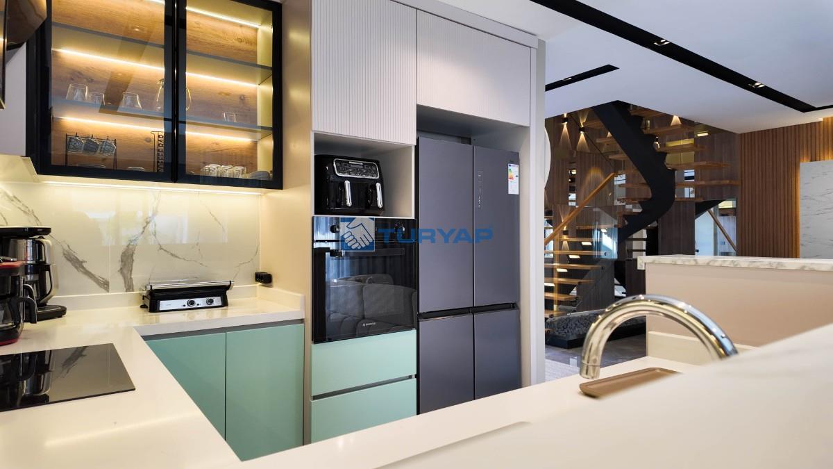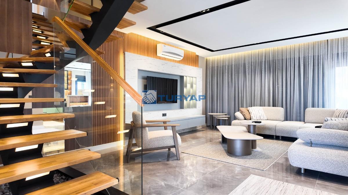 Toplam 235 m2 net yaşam alanına sahip bu 4+1 villada her odada klima ve konforlu yerden ısıtma sistemi bulunuyor.