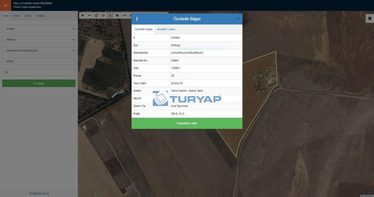 TARLAMIZ GÖLBAŞI ÇERKEZHÖYÜK (GÖKÇEHÜYÜK) mevkiinde Toplam'da 22.032 M² olup - 4.789 M² Hisse Satılıktır