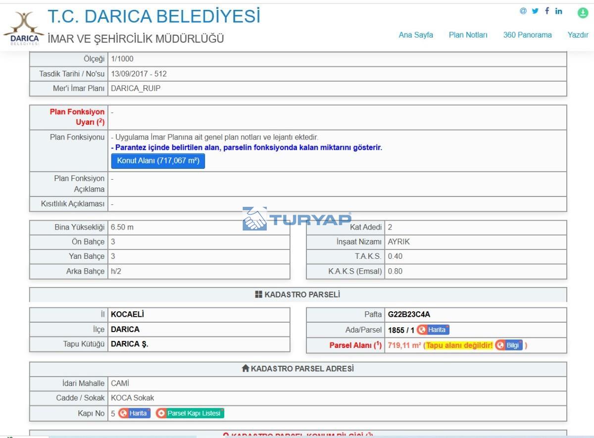 Toplam 719,11 m² parsel alanına sahip olan arsa; konut imarlı, ayrık nizam yapılaşma koşullarına sahip olup hemen inşaata uygun durumdadır.