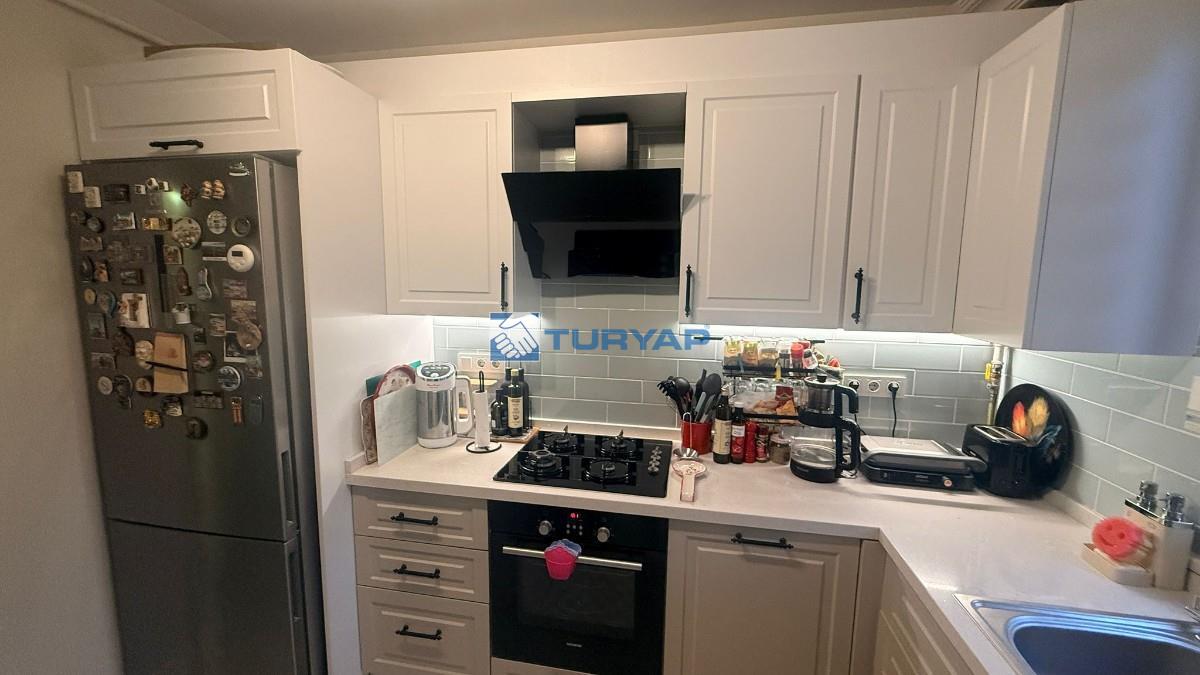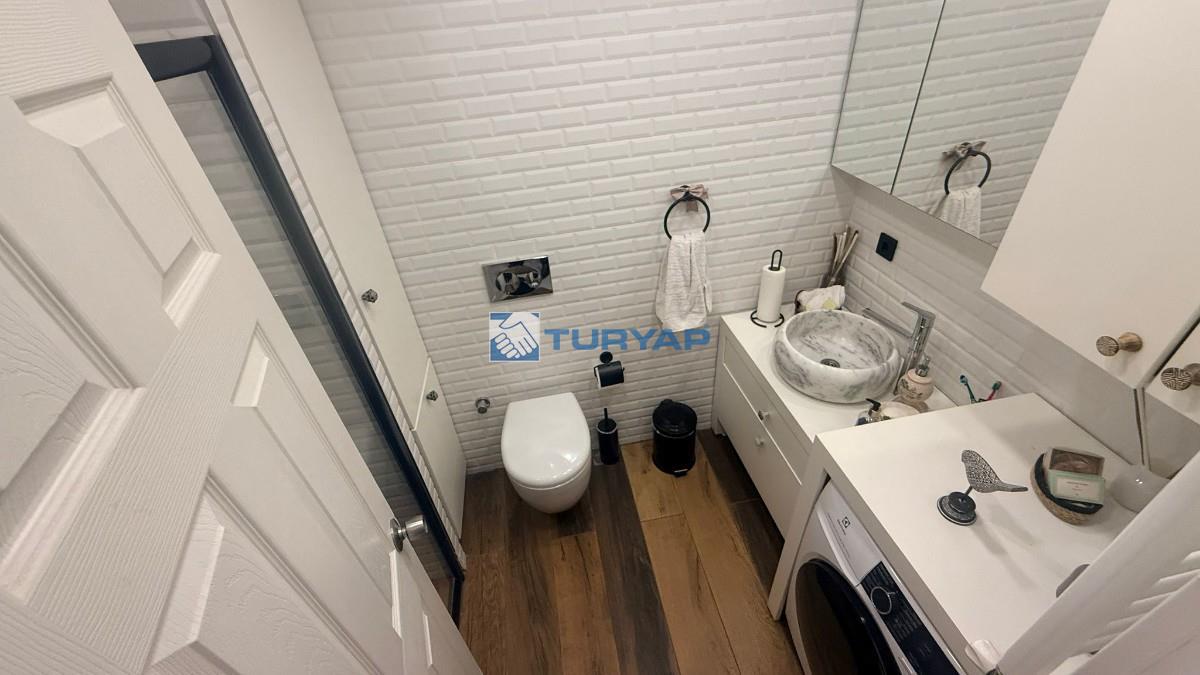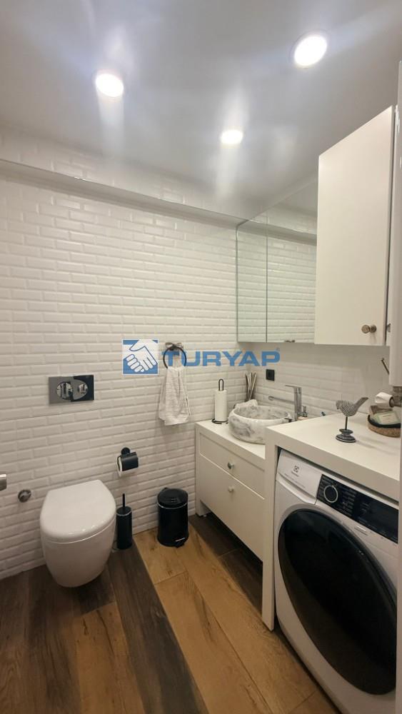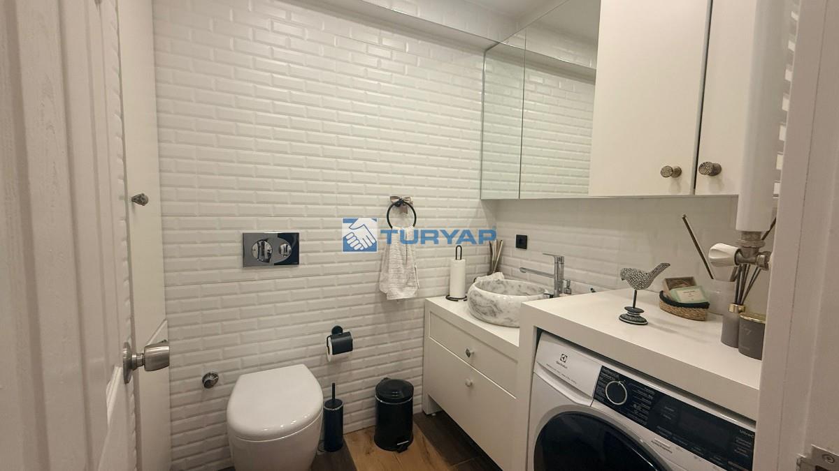 Mutfak ve banyo komple yenilenmiş, modern ve kullanışlı bir şekilde tasarlanmıştır.
