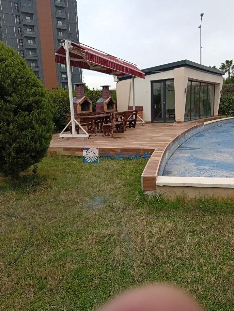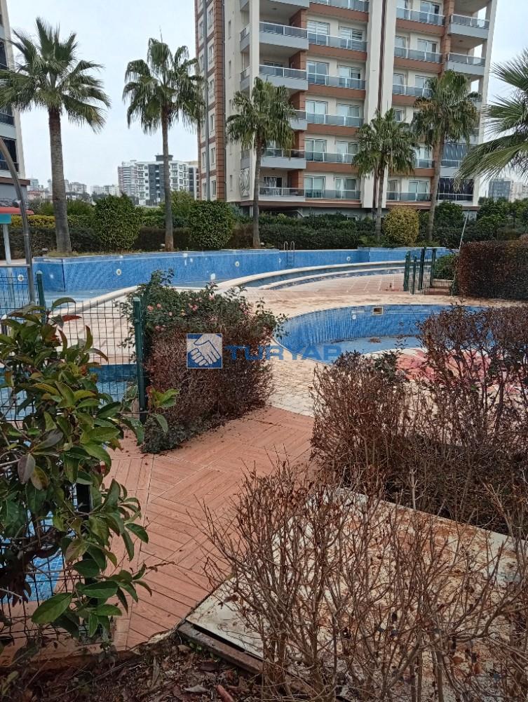 Mersin Menteş 50. yıl mahallesinde 20. cadde üzerinde site içerisinde 2. kat güney kuzey batı cepheli çift asansörlü doğal gazlı 1. sınıf lüks yapı 4+1 salon kızartma odası yüzme havuzu sosyal tesisleri mevcuttur