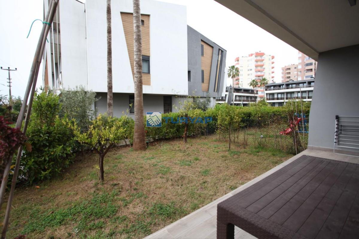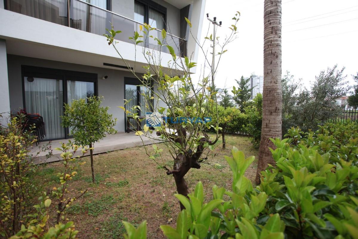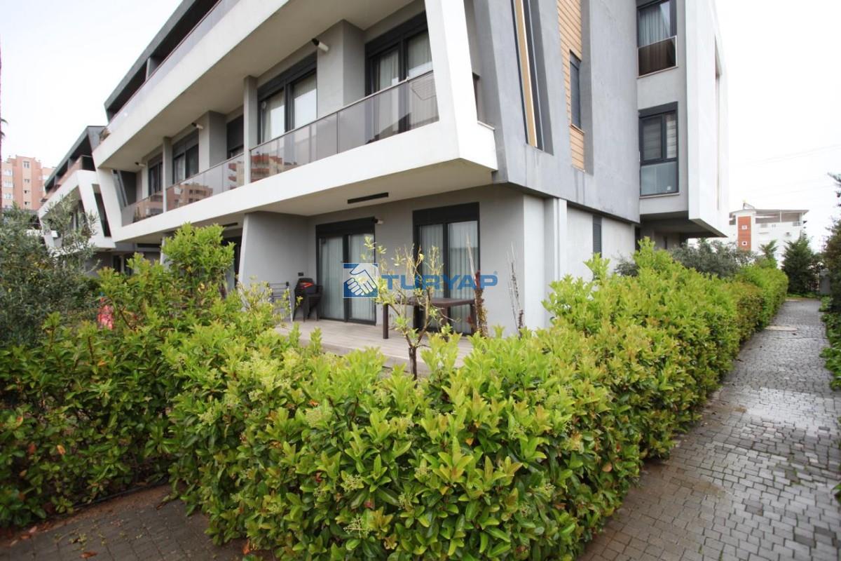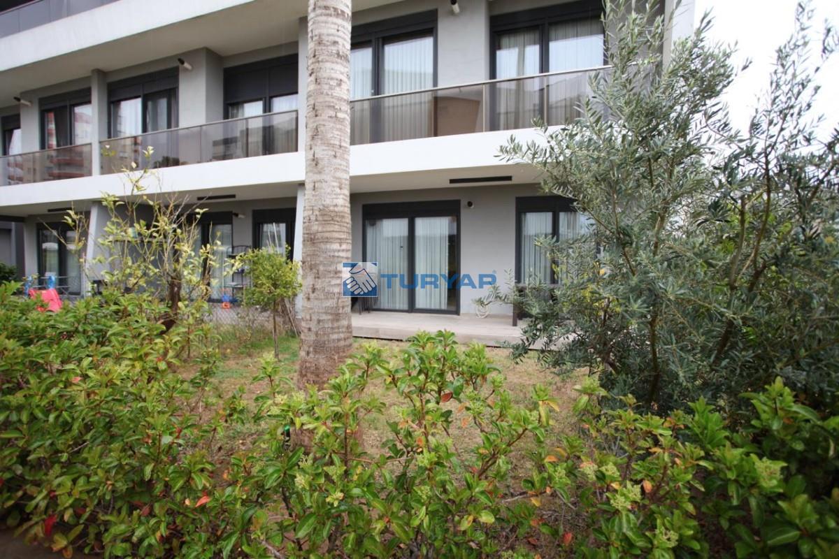 Antalya Lara Güzeloba Mahallesin de Tesisler Caddesi Üzerinde 1+1 Lüks Eşyalı Güvenlikli Full Özellikli Sitede 60 m2 Bahçe Kullanımlı 12 m2 Balkon Kullanımlı Satılık Bahçe Katı Köşe Daire