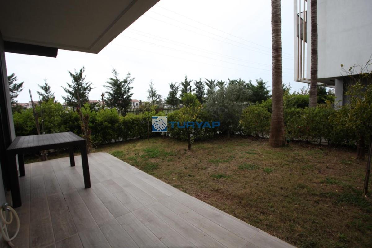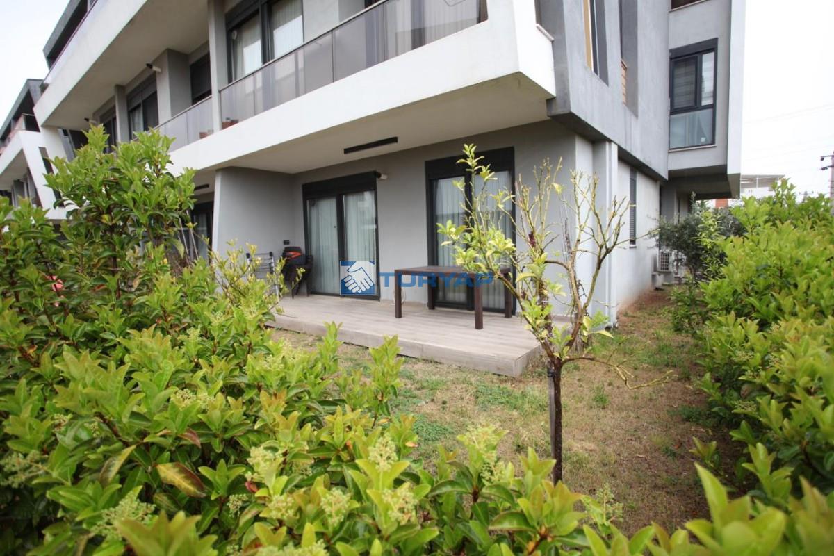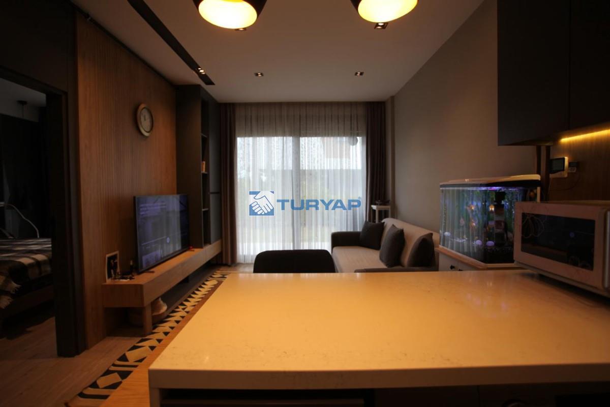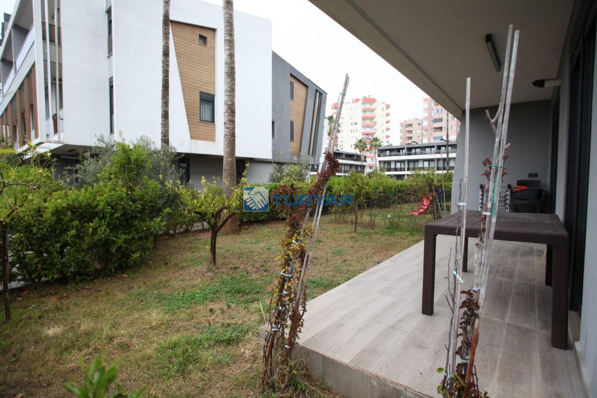 Antalya Lara Güzeloba Mahallesin de Tesisler Caddesi Üzerinde 1+1 Lüks Eşyalı Güvenlikli Full Özellikli Sitede 60 m2 Bahçe Kullanımlı 12 m2 Balkon Kullanımlı Satılık Bahçe Katı Köşe Daire