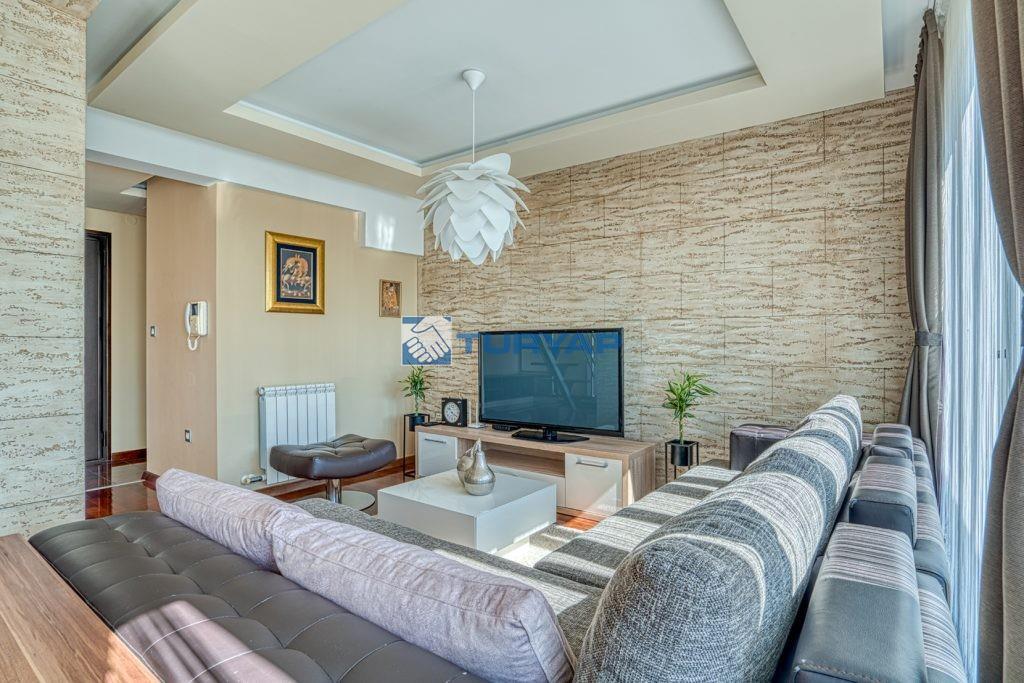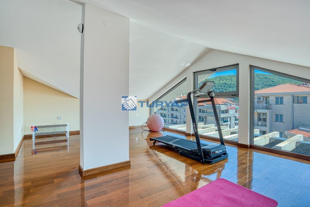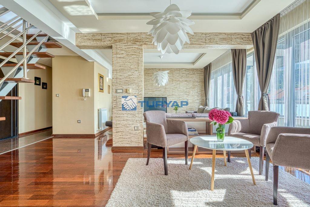 Üst düzey işçilik ve birinci sınıf malzemeler iç mekanı tanımlıyor: banyolarda Geberit ve Hansgrohe armatürleri ve yerden ısıtma sistemi bulunuyor, tüm odalarda merkezi ısıtma ve bireysel klima sistemi mevcut, egzotik Afrika kiraz ağacı (merbau) parke zemin ve koridorlarda, mutfakta ve çamaşırhane alanında çok renkli Brezilya granit fayanslar kullanılmış.