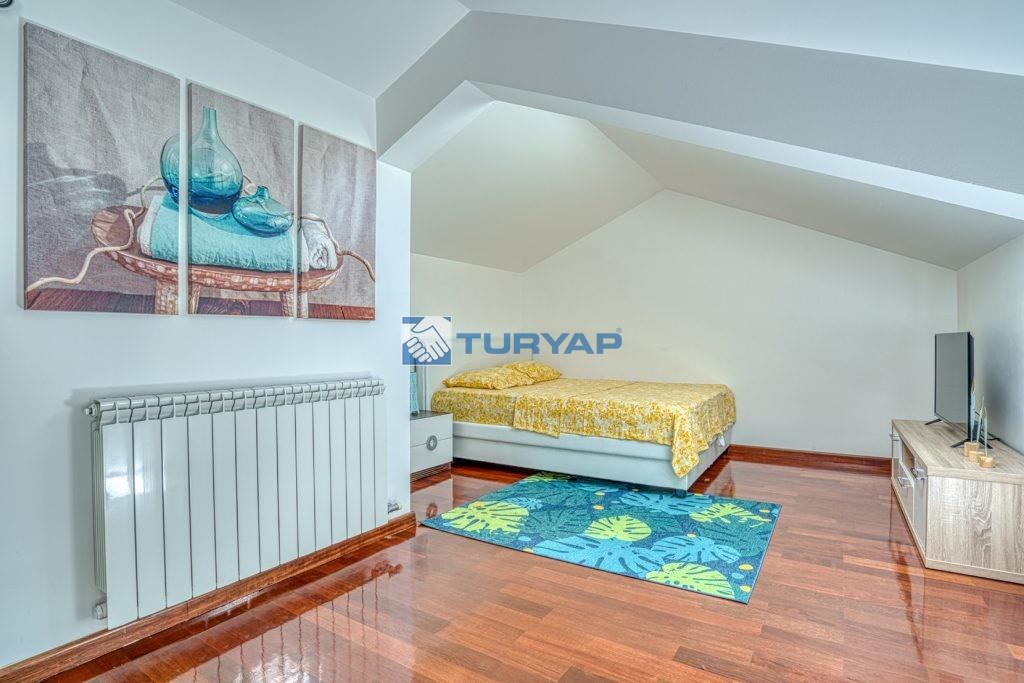 Üst katta, her biri kendi banyosuna sahip iki yatak odası, ek bir banyo, bir galeri, geniş bir gardırop ve ikinci bir balkon bulunmaktadır; bu da özel ve sakin bir dinlenme alanı yaratmaktadır.