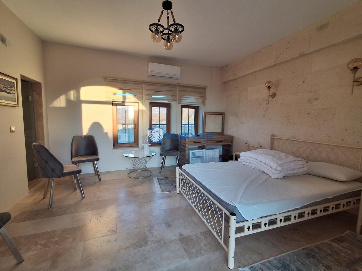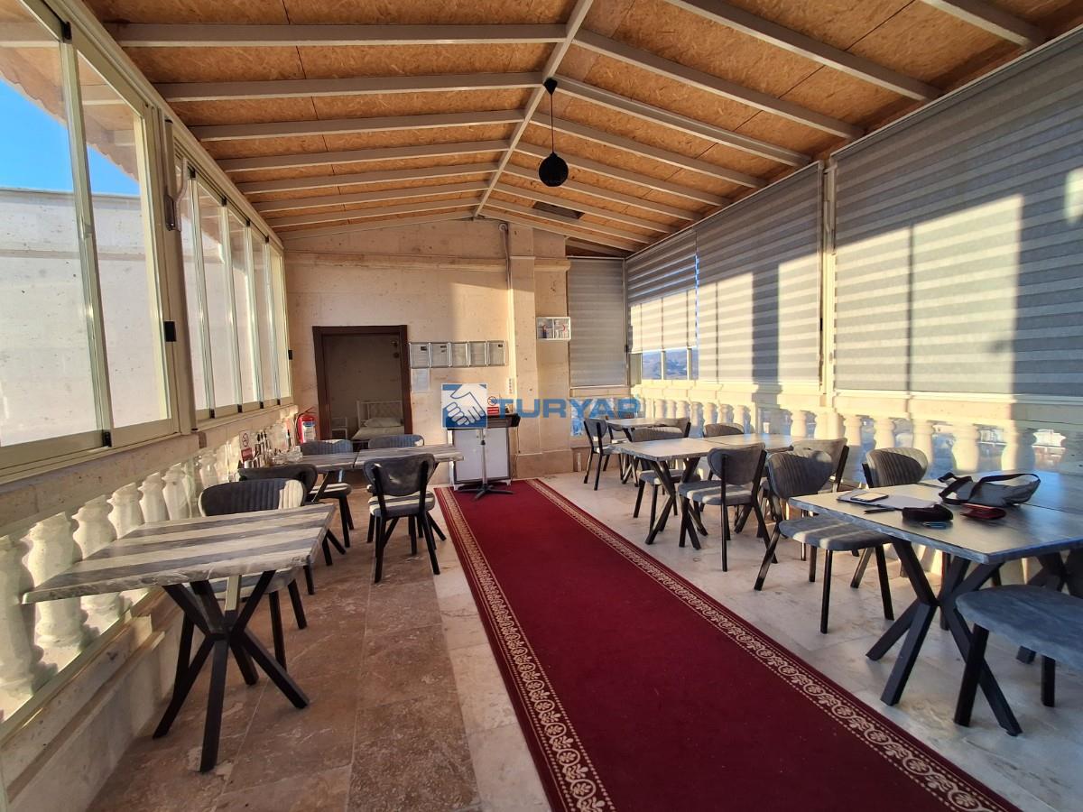 Bölgenin panoramik peri bacasına ve bölgenin sembolü olan balon manzarasına hakimdir.