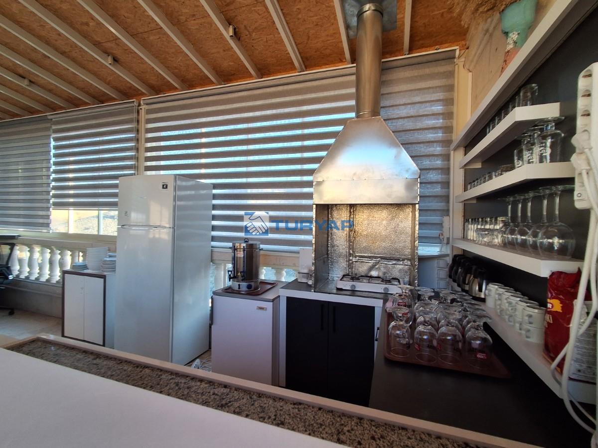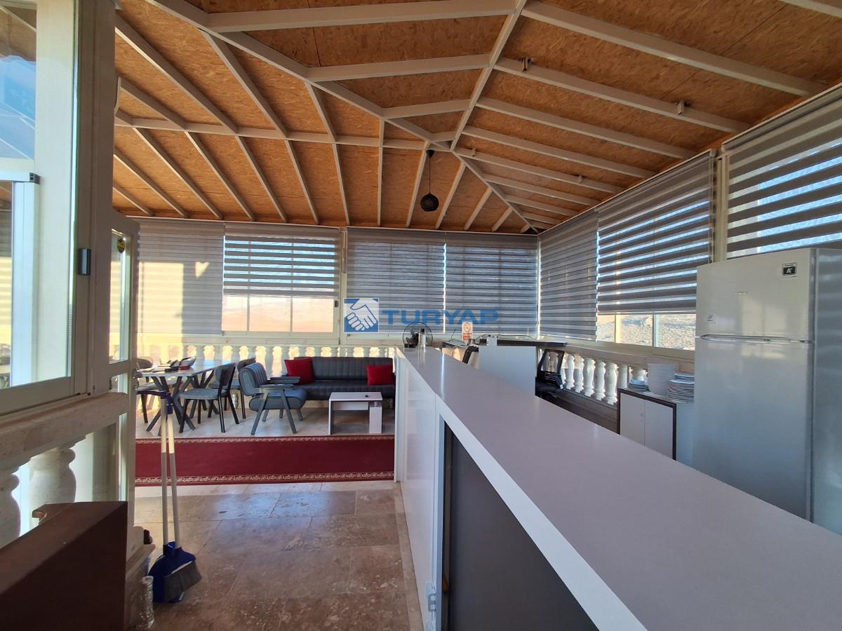 Zemin katında manzaralı 4 oda ve bahçe alanı ,üst katta 2 oda, en üst katta camla kapatılmış 55 m2 restaurant alanı ve tamamen bölgenin panoramik manzarasına hakim teras bulunmaktadır.