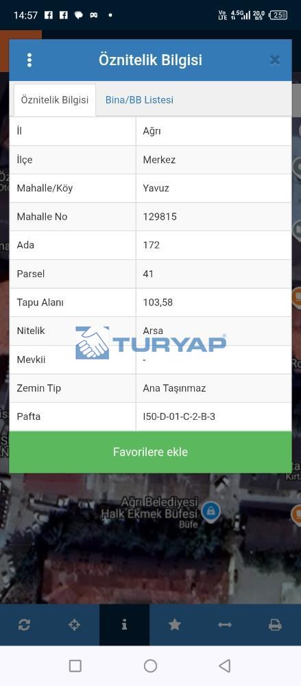 Ağrı merkez Yavuz mahallesi carşı merkezde ekin pide yanıňda bulunan 735 M2 otopark olarak kullanılan 6 kat imarlı yatırımlık arsamız satılıktır.