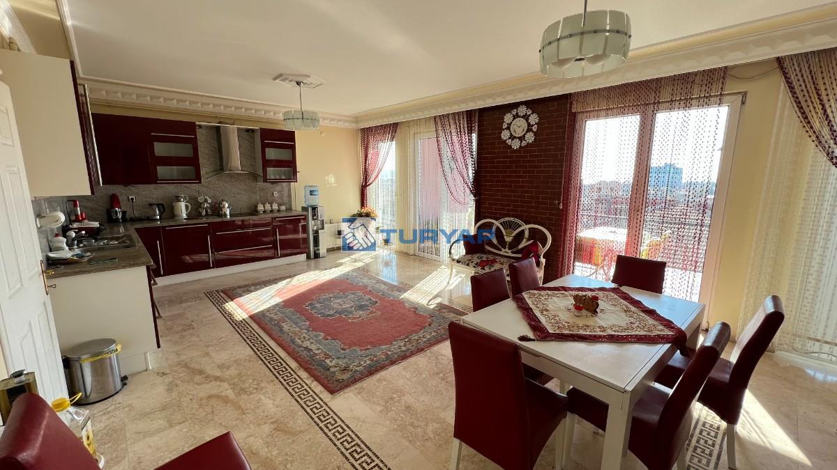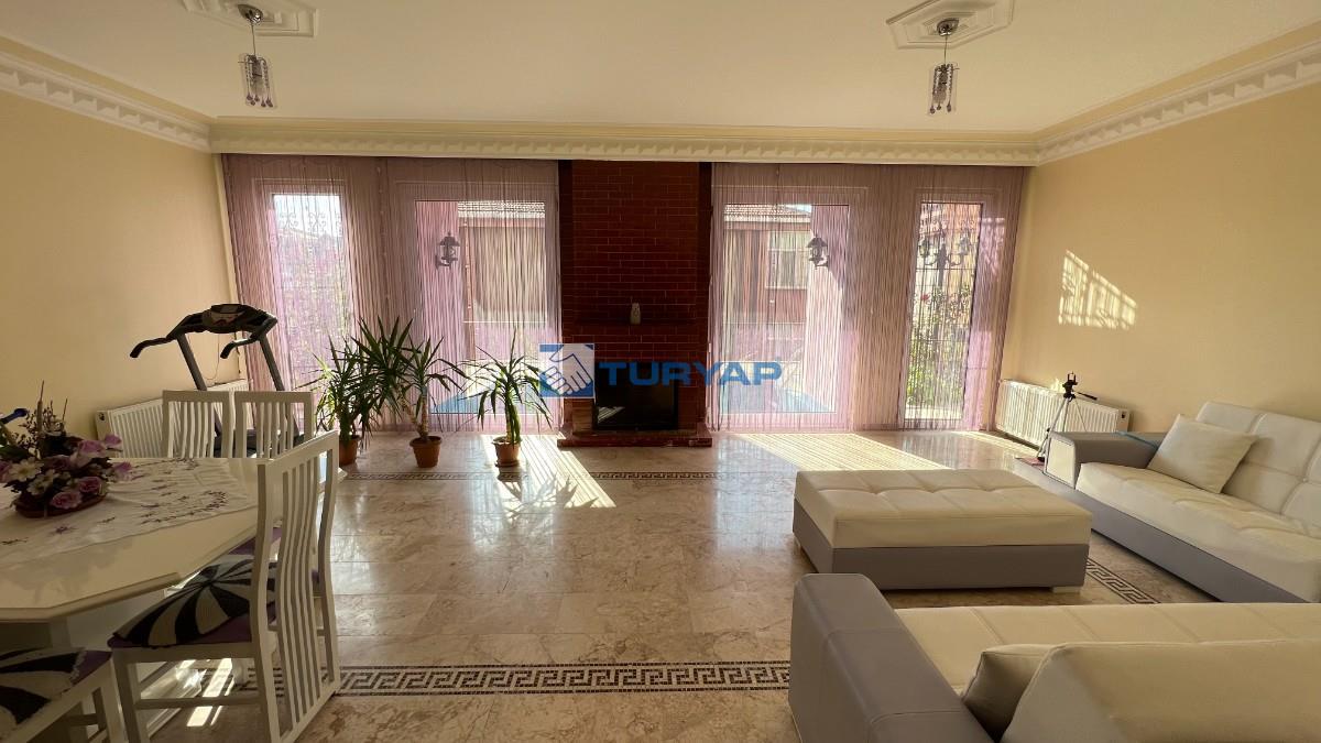 -1 Kat: 145 m2 lik çok büyük bir şömineli salon ve 3 balkon ve banyo wc