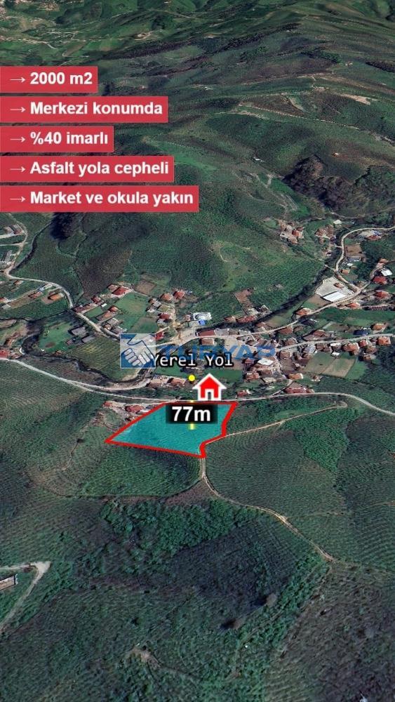 SATILIK YOLA CEPHE % 40 KONUT İMARLI ARSA HENDEK DEREKÖY MH. Hendek, Dereköy Mahallesi'nde Satılık Yola Cephe % 40 konut imarlı arsa; * Ada / Parsel : 139 / 17 * Toplam Alan: 9035 m2 * Satışa sunulan kısım : 2.000 m2 * İmar Durumu :% 40 imarlı Konum: Dereköy merkezde, anayola cephe, köy merkezine ulaşımda yol boyunca asfalt yol olması sebebi ile ulaşım kolaylığı, Yatırımcılar için cazip fırsat! * 2000 m2 alanda 100 m2 alan konut yapımı için düzleştirilmiştir. * Yola cephe konumu sayesinde ulaşım avantajı yüksek, * Gelişime açık bölgede hem yatırım, hem de kendi projeleriniz için ideal, * Altyapıya yakın değer kazanan bölgede konumlanıyor, * Merkezi konum sayesinde, market, cami, okul gibi yerlere yürüme mesafesinde, * Sakarya İl merkeze 40 km , Hendek İlçe Merkeze 35 Km, Karasu İlçe merkeze 22 Km mesafededir, NOT: * Talep halinde arsanın tamamı da satışa sunulabilir. 9035 m2 alandan 2000 m2 alan içi n ifraz başvurusu yapılmıştır. * Araç takası değerlendirilir. Avantajlı fiyat ve konumuyla öne çıkan bu arsayı kaçırmayın. Detaylı bilgi için iletişime geçin. TEK YETKİLİ TURYAP GAYRİMENKUL ADAPAZARI GAYRİMENKUL DANIŞMANI YONCA ALKAYA 0 552 824 49 54