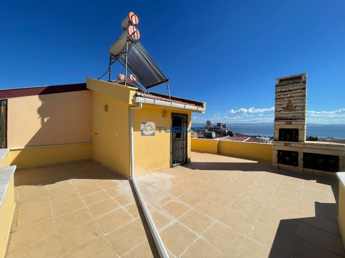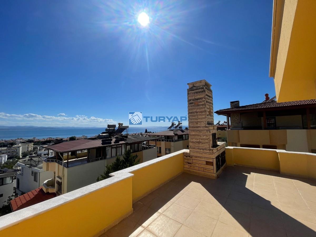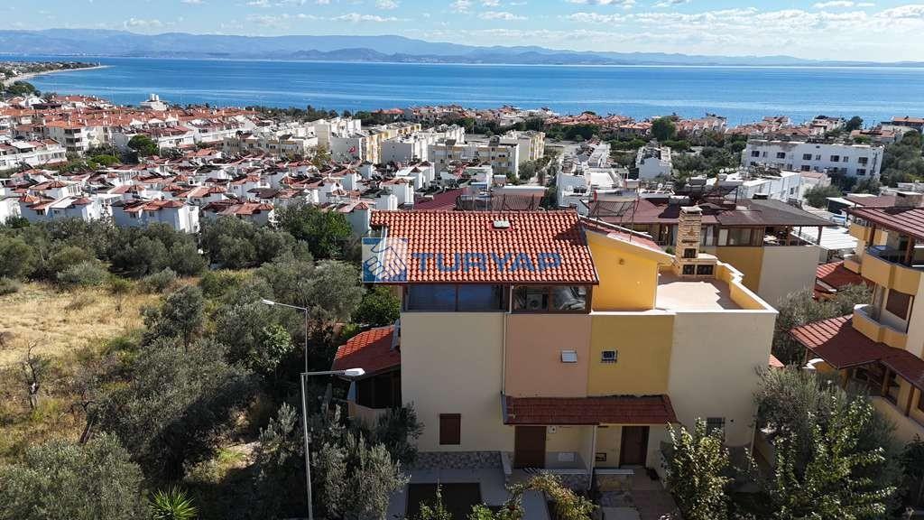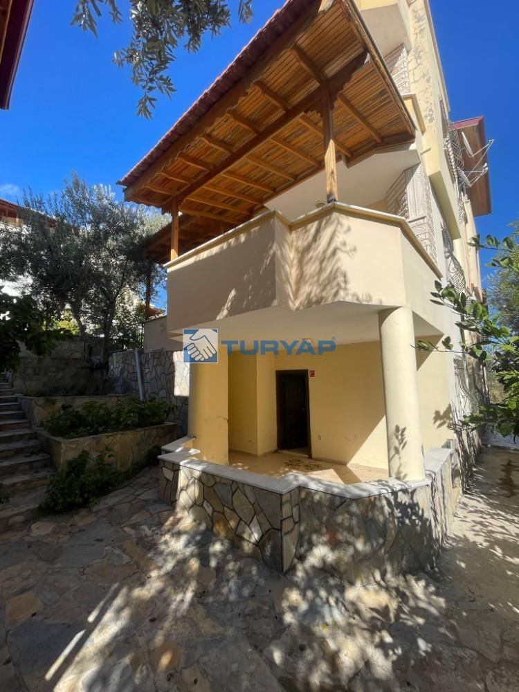 Kazdağı Sitesi’nin huzurlu atmosferinde, doğa, havuz ve deniz manzarasına sahip brüt 235 m², net 125 m² kullanım alanına sahip 3+2 bu özel villa sizleri bekliyor. Yaz–kış oturuma uygun olan villada ısınma altyapısı hazır olup, geniş verandası ve barbeküsüyle keyifli yaşam alanları sunmaktadır. Terasında deniz, doğa ve havuz manzarasının tadını çıkarabileceğiniz ikinci bir barbekü alanı da mevcuttur. Mülkün girişinde 15 m² bahçe kullanımı ve yan cephede ek bahçe alanı bulunmaktadır. Kat Planı: Giriş Katı: Salon, açık mutfak, WC ve veranda 1. Kat: 3 oda (birisi balkonlu ve deniz manzaralı), ortak banyo 2. Kat: Teras, manzara ve barbekü alanı Giriş Altı Kat: Salon, açık mutfak, banyo, veranda ve kiler alanı Alt kat bölümü istenirse 1+0 olarak ya da küçük bir tadilatla 1+1 daireye dönüştürülerek kiraya verilebilir. Sitede bu şekilde düzenlenmiş emsalleri bulunmaktadır. Doğa ile iç içe, güvenli, havuzlu site yaşamı arayanlar için eşsiz bir fırsat!