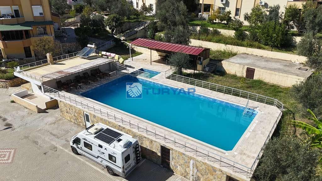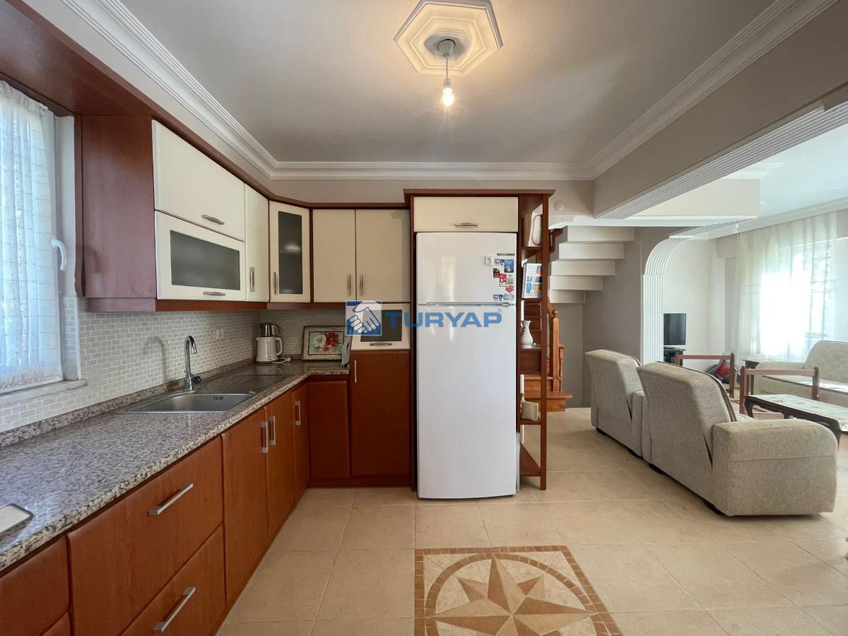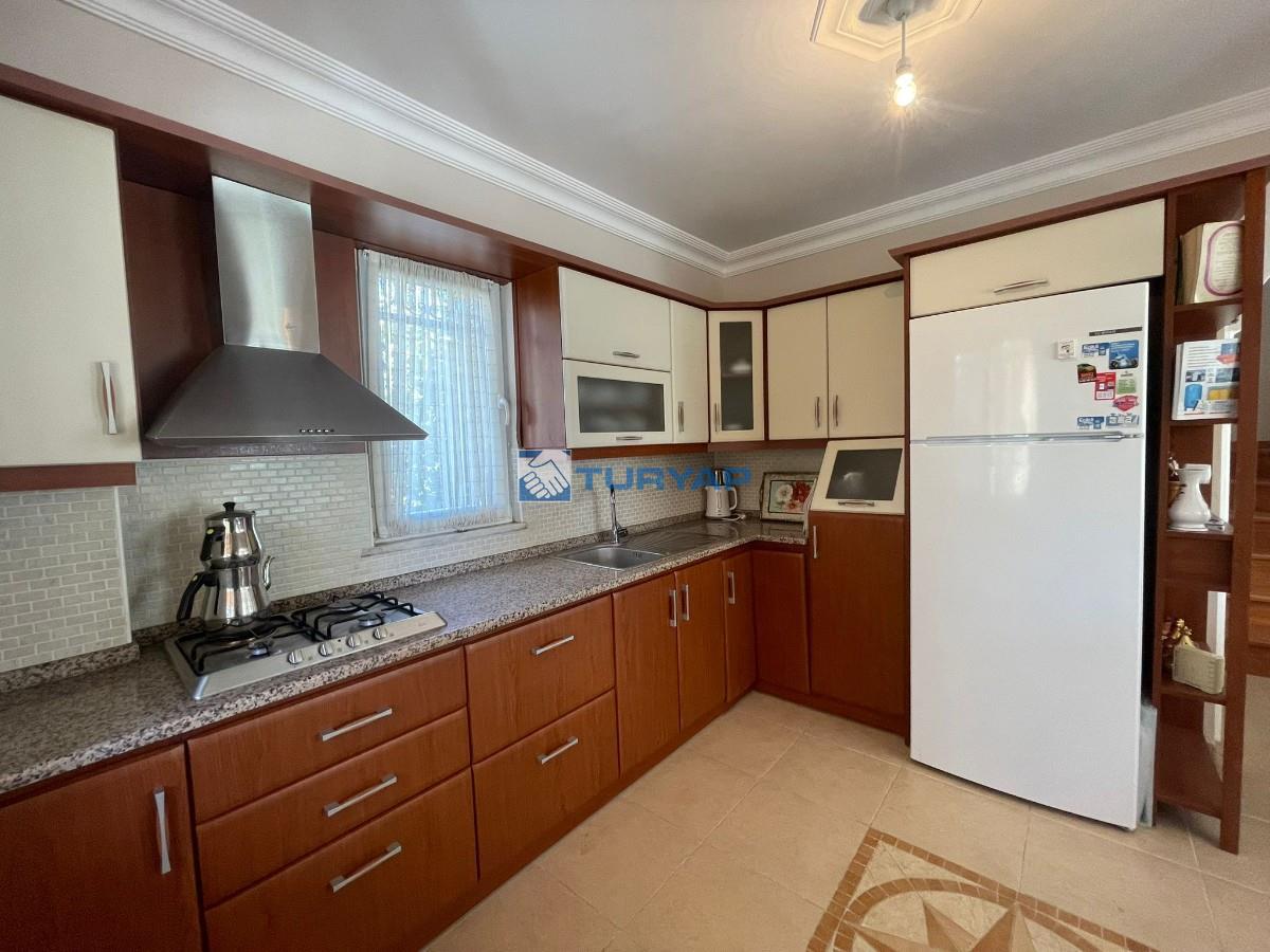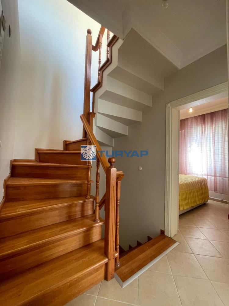 Kazdağı Sitesi’nin huzurlu atmosferinde, doğa, havuz ve deniz manzarasına sahip brüt 235 m², net 125 m² kullanım alanına sahip 3+2 bu özel villa sizleri bekliyor. Yaz–kış oturuma uygun olan villada ısınma altyapısı hazır olup, geniş verandası ve barbeküsüyle keyifli yaşam alanları sunmaktadır. Terasında deniz, doğa ve havuz manzarasının tadını çıkarabileceğiniz ikinci bir barbekü alanı da mevcuttur. Mülkün girişinde 15 m² bahçe kullanımı ve yan cephede ek bahçe alanı bulunmaktadır. Kat Planı: Giriş Katı: Salon, açık mutfak, WC ve veranda 1. Kat: 3 oda (birisi balkonlu ve deniz manzaralı), ortak banyo 2. Kat: Teras, manzara ve barbekü alanı Giriş Altı Kat: Salon, açık mutfak, banyo, veranda ve kiler alanı Alt kat bölümü istenirse 1+0 olarak ya da küçük bir tadilatla 1+1 daireye dönüştürülerek kiraya verilebilir. Sitede bu şekilde düzenlenmiş emsalleri bulunmaktadır. Doğa ile iç içe, güvenli, havuzlu site yaşamı arayanlar için eşsiz bir fırsat!