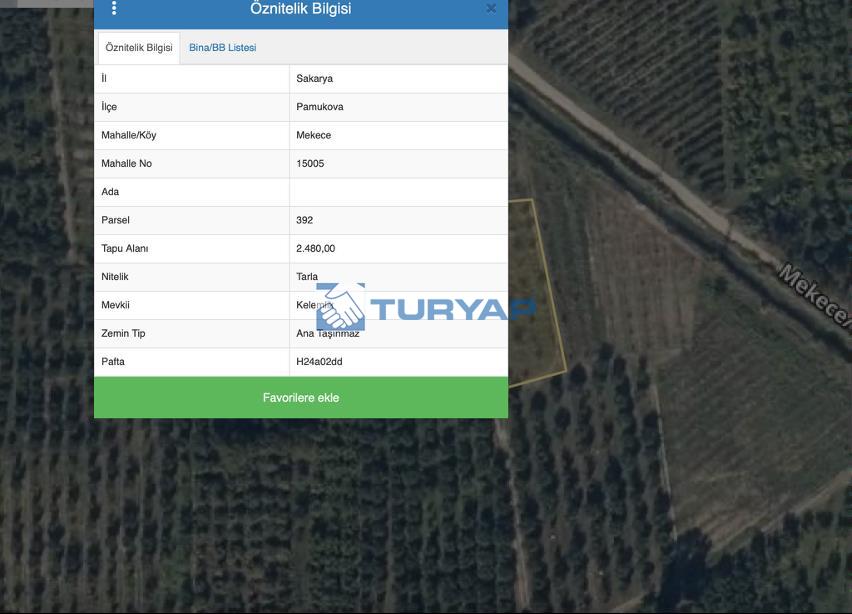 PAMUKOVA MEKECE KALEMLİK MEVKİİNDE SATILIK MÜSTAKİL TAPULU TARLA ; Konum : Sakarya, Pamukova, Mekece Mahallesi, Kalemlik Mevkii, Ada / Parsel : 0 Ada / 392 Parsel, Alan : 2.480 m2 Tapu Durumu: Müstakil Tapulu Tarla Doğayla iç içe, huzurlu bir yaşam veya yatırım fırsatı arayanlar için kaçırılmayacak bir fırsat! Sulama kanalına yakın, Yola cephesi mevcut Verimli toprak yapısına sahip, Antalya yoluna 200 metre mesafede Yerleşim bölgesine 350 metre mesafede, İçerisinde 60 adet yetişkin ayva ağacı bulunmaktadır. Orta ve uzun vadede yüksek yatırım potansiyeline sahip bu arazi hem tarımsal faaliyetler hem de geleceğe dönük yatırım için ideal bir fırsattır. “TEK YETKİLİ TURYAP ADAPAZARI GARANTİDİR” Sorumlu Gayrimenkul Danışmanı Yonca Alkaya Adapazarı Turyap Garanti Tel: 0552 824 49 54