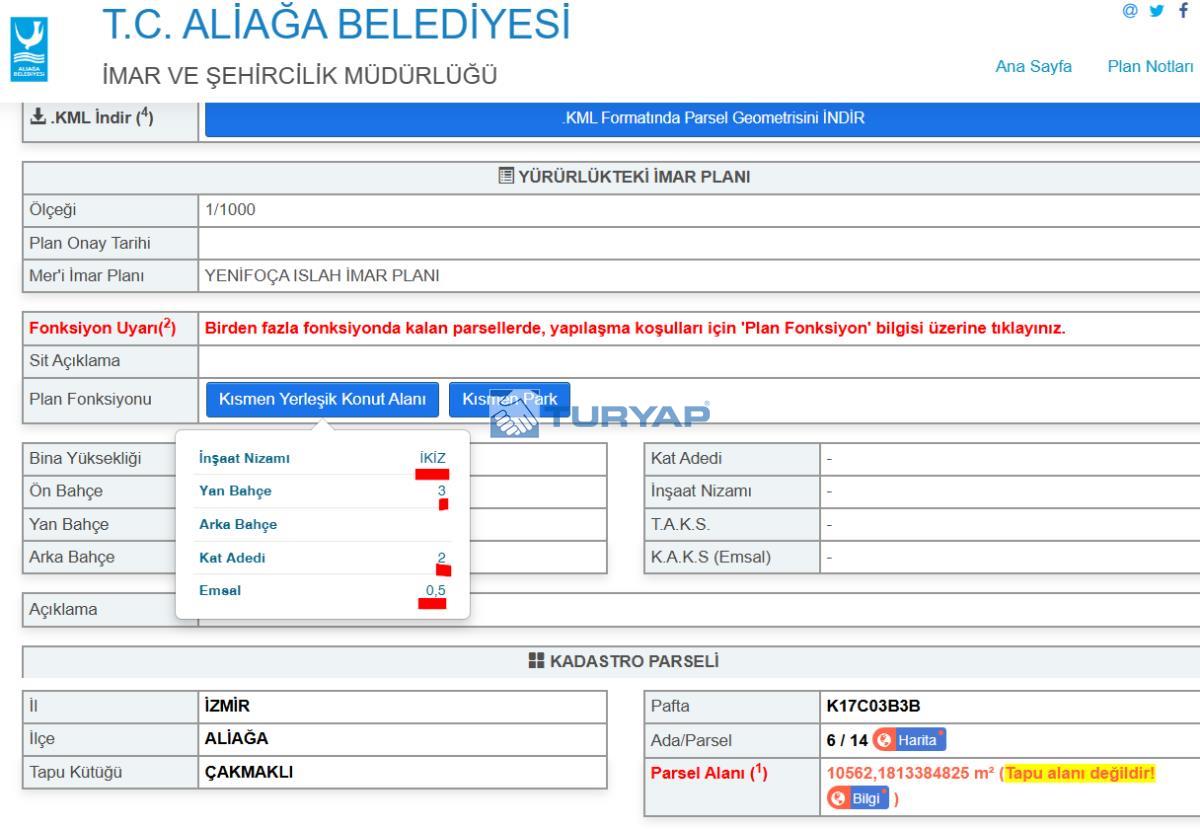(İlan resimlerimizde imar durumu görünmekte olup, Detay için Aliağa Belediyesi E-İMAR internet sayfasına bakılabilir.)