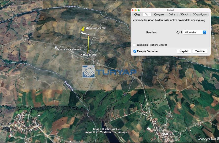Sakarya , Adapazarı , Karadavutlu mh'nde 2589 m2 satılık müstakil tapulu tarla;