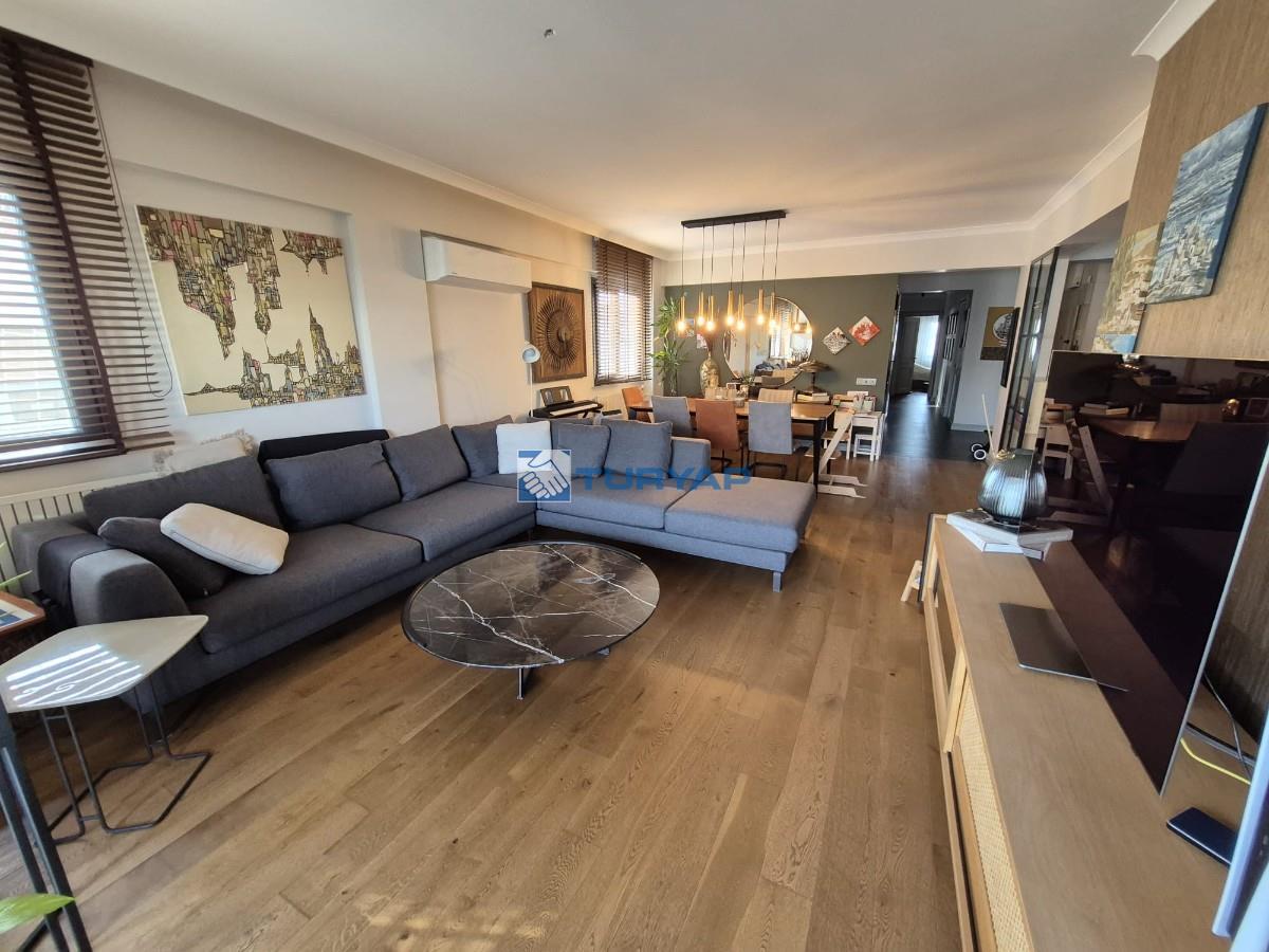 Sahile 250 metre mesafede, Girne Bulvarı üzerinde, özel tadilatlı, net 138 m2lik köşe daire...