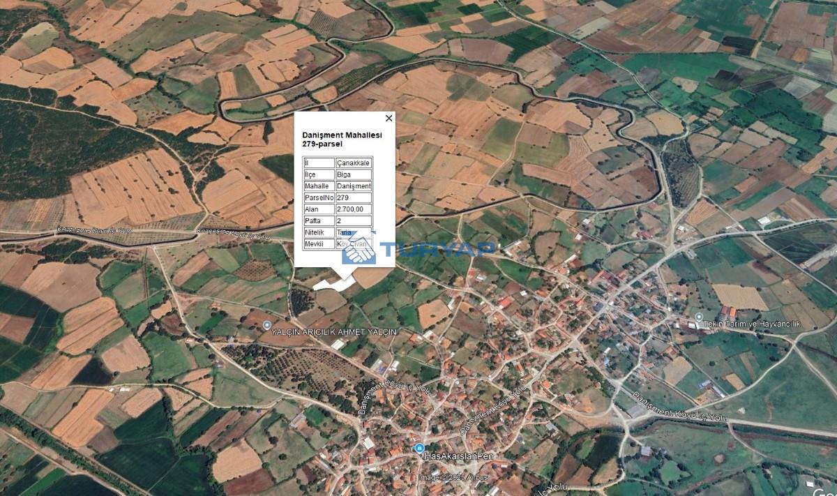 ÇANAKKALE BİGA DANIŞMENT KÖYÜ – 2.700 m² SATILIK TARLA