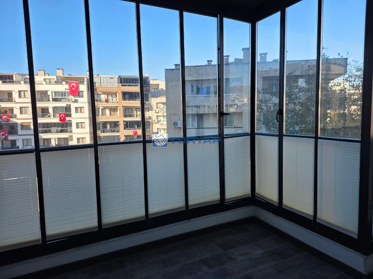 Balkonlar katlanır cam ile kapatılmış,