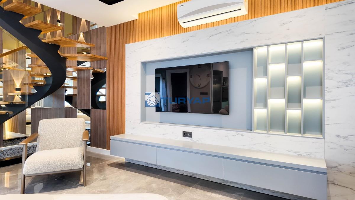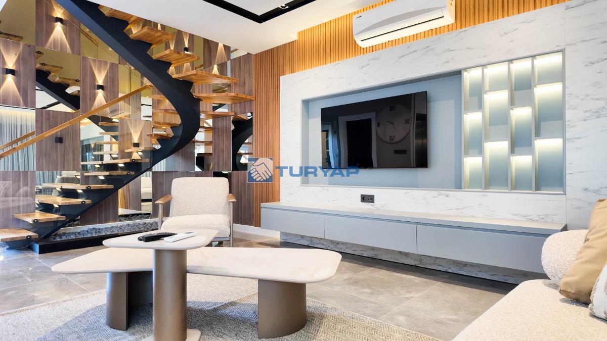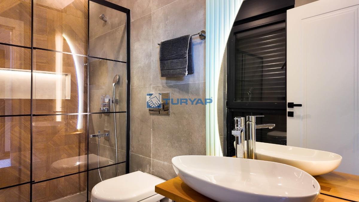 Toplam 235 m2 net yaşam alanına sahip bu 4+1 villada her odada klima ve konforlu yerden ısıtma sistemi bulunuyor.