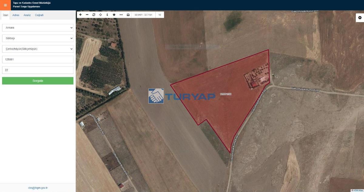 TARLAMIZ GÖLBAŞI ÇERKEZHÖYÜK (GÖKÇEHÜYÜK) mevkiinde Toplam'da 22.032 M² olup - 4.789 M² Hisse Satılıktır