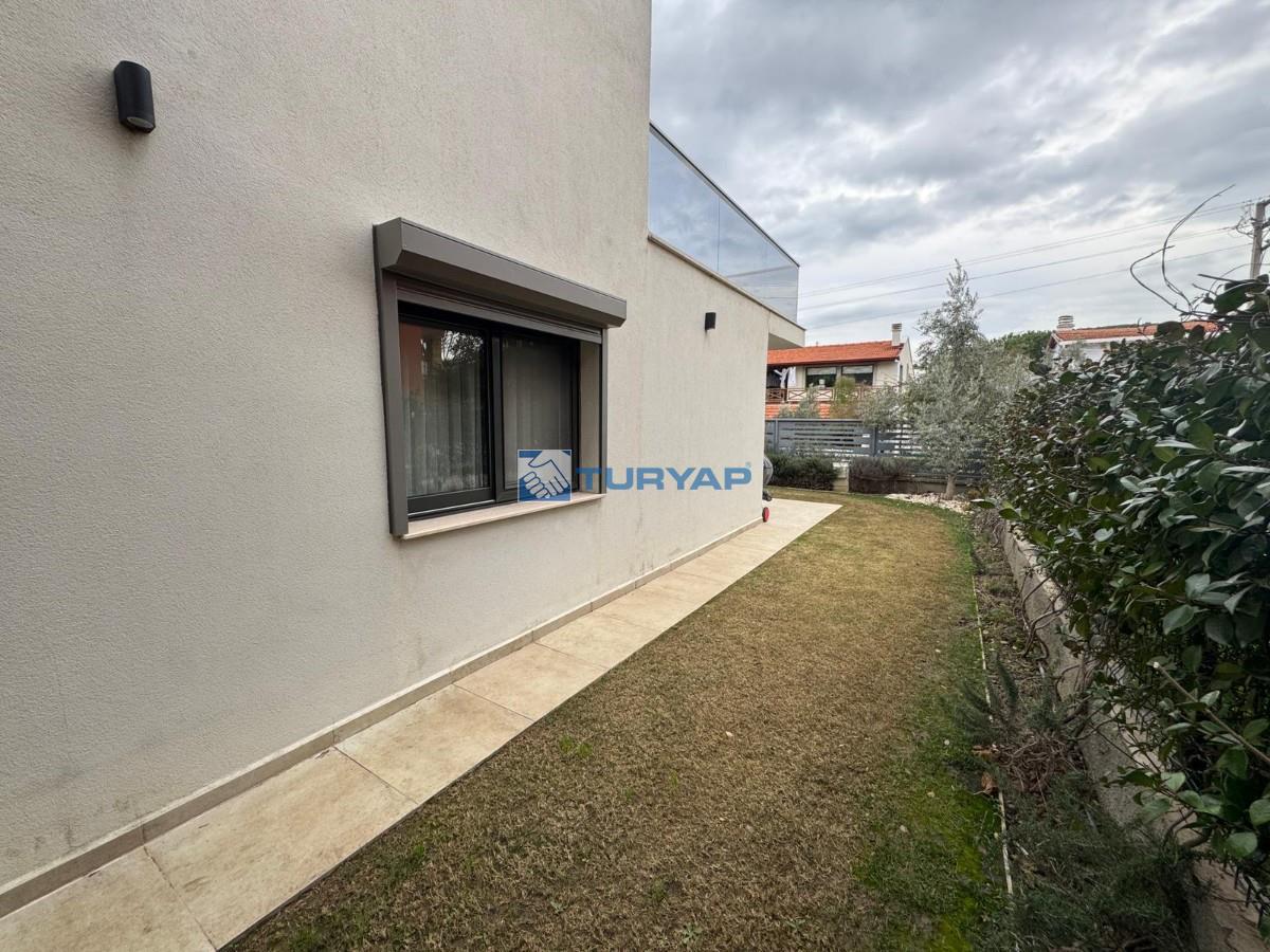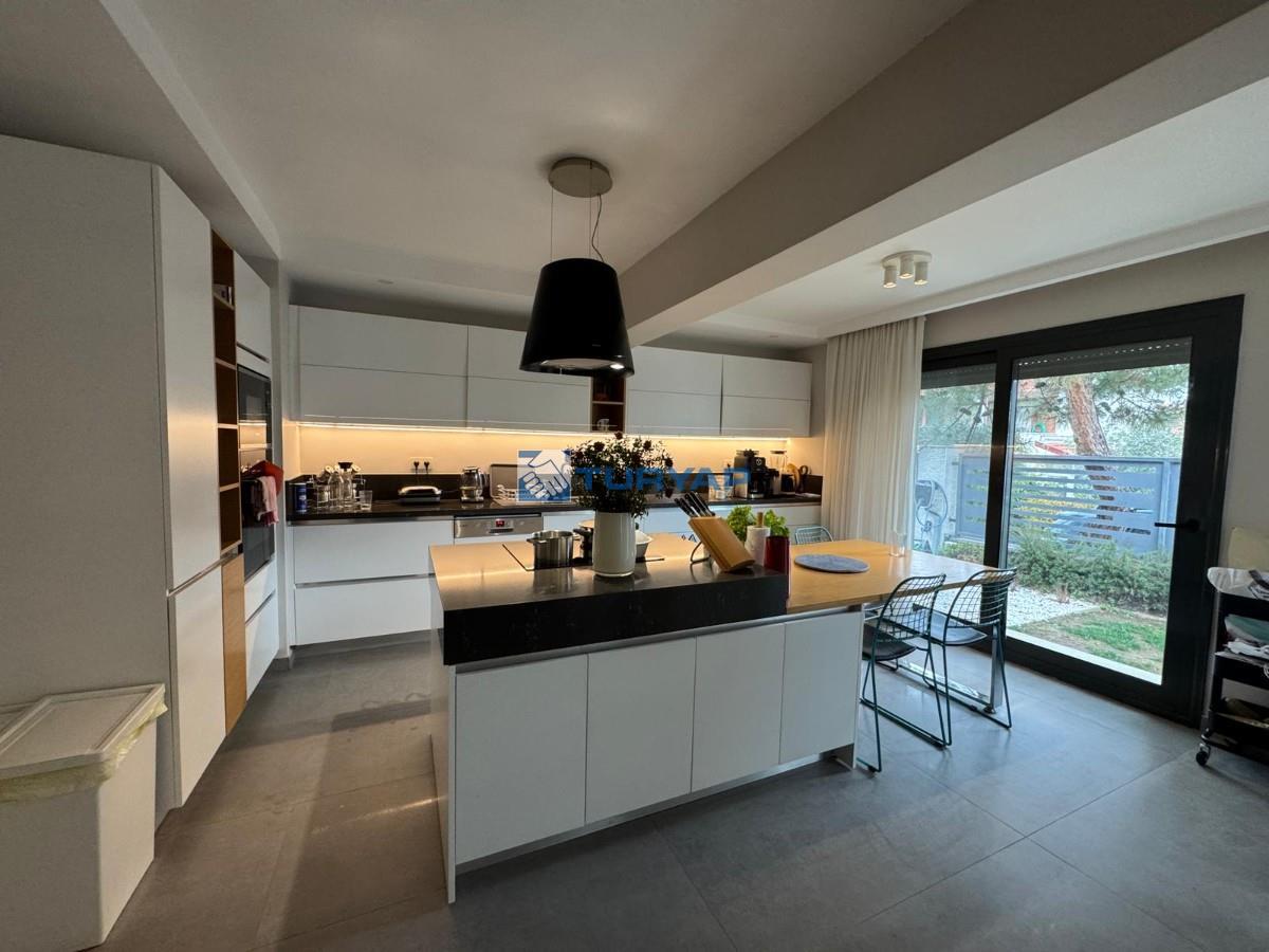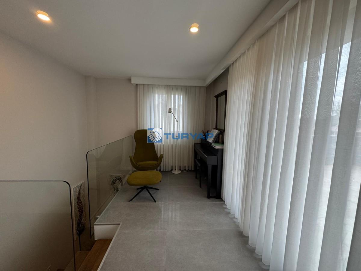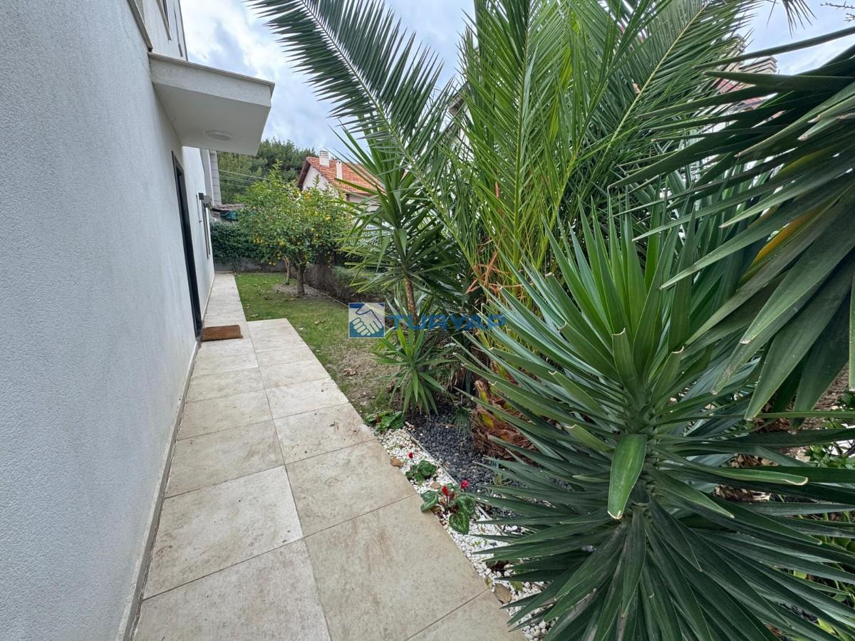 Brüt 220 m² / Net 180 m², kullanışlı 5+1 planı, geniş terası ve dört tarafı bahçesiyle ferah bir yaşam sunar. Isı pompası ile ısınma mevcut olup, doğal gaz altyapısı kapıya kadar hazırdır. Üst katlardan deniz manzarası bulunmaktadır.