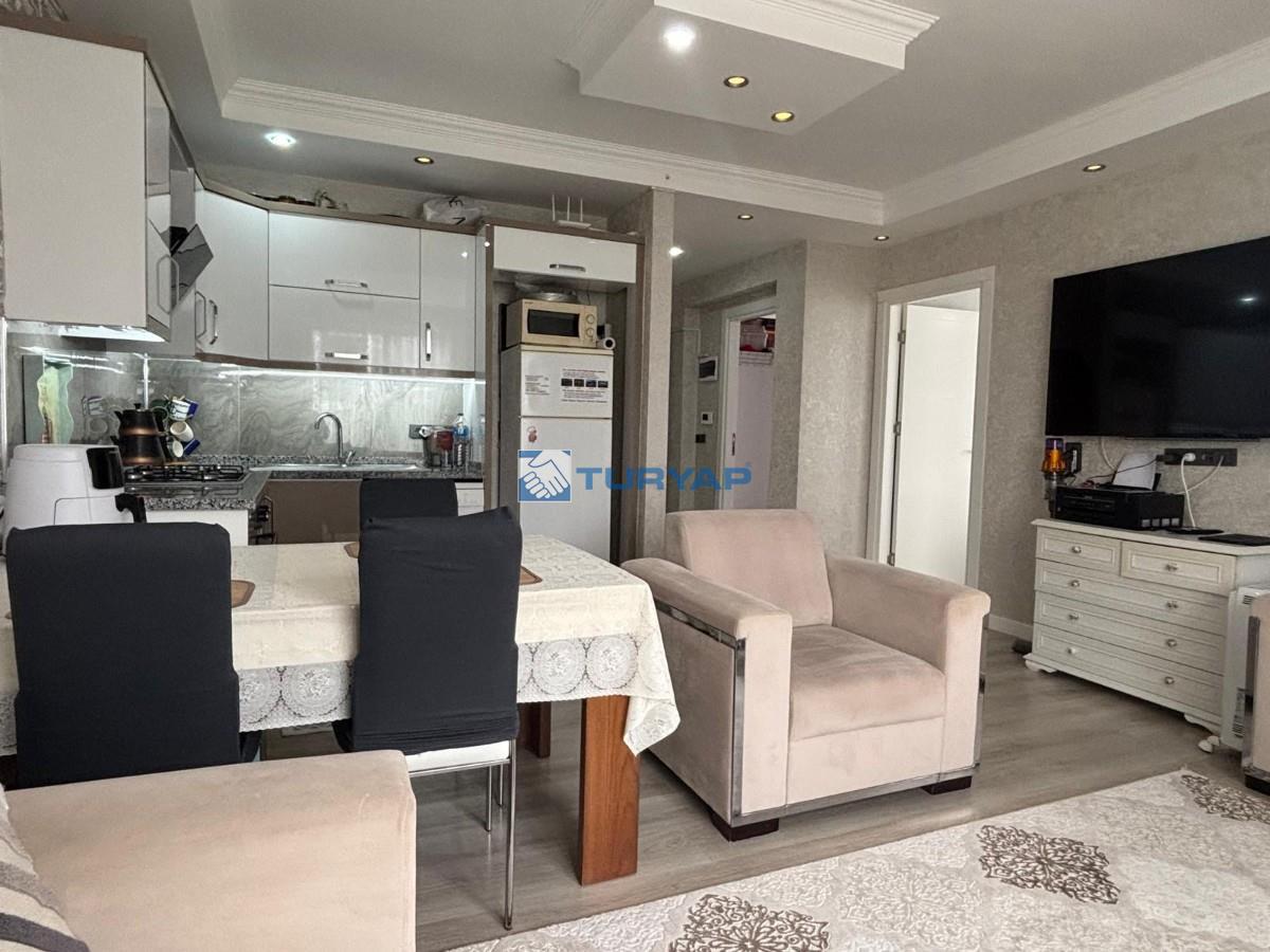 Açık mutfak salon 85 m2 bürüt kullanım alanı olan dairemiz geniş balkonu ile dikkat çekmektedir.