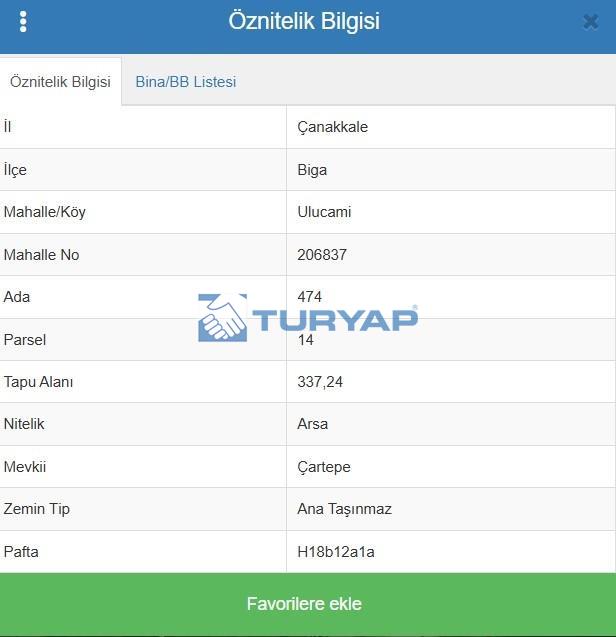 ÇANAKKALE KARABİGA ULUCAMİ DENİZ MANZARALI 337 M2 KUPON ARSA