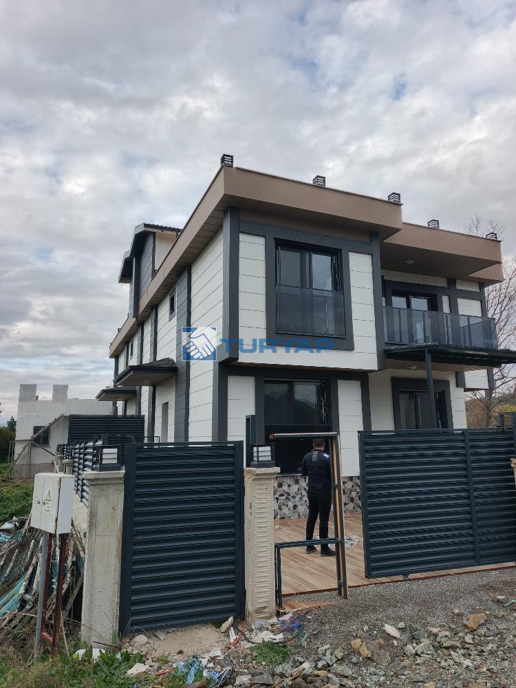 Villamız özel yapım olup 470 m2 alan içerisinde iki adet villadan oluşmaktadır.Girişleri ayrı olup müstakil havuz ve 200 m2 bahçe kullanım alanına sahiptir.