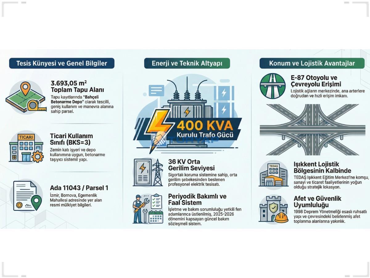 Ağır vasıta giriş-çıkışına uygun lokasyonu ve otobana yakınlığı ile lojistik süreçlerinizi hızlandıran tesisimiz, aynı zamanda şehir merkezine yakınlığıyla personel erişimi açısından da avantajlıdır.