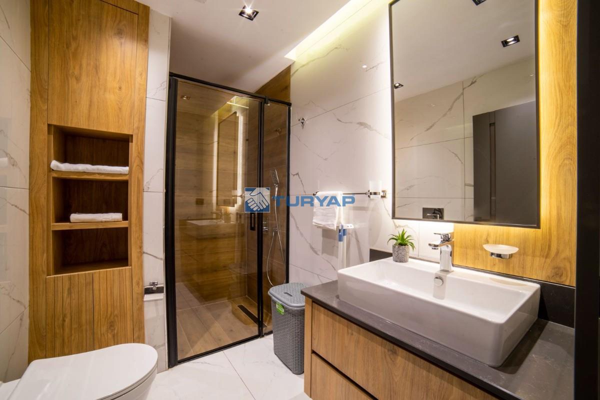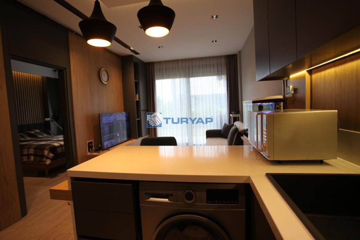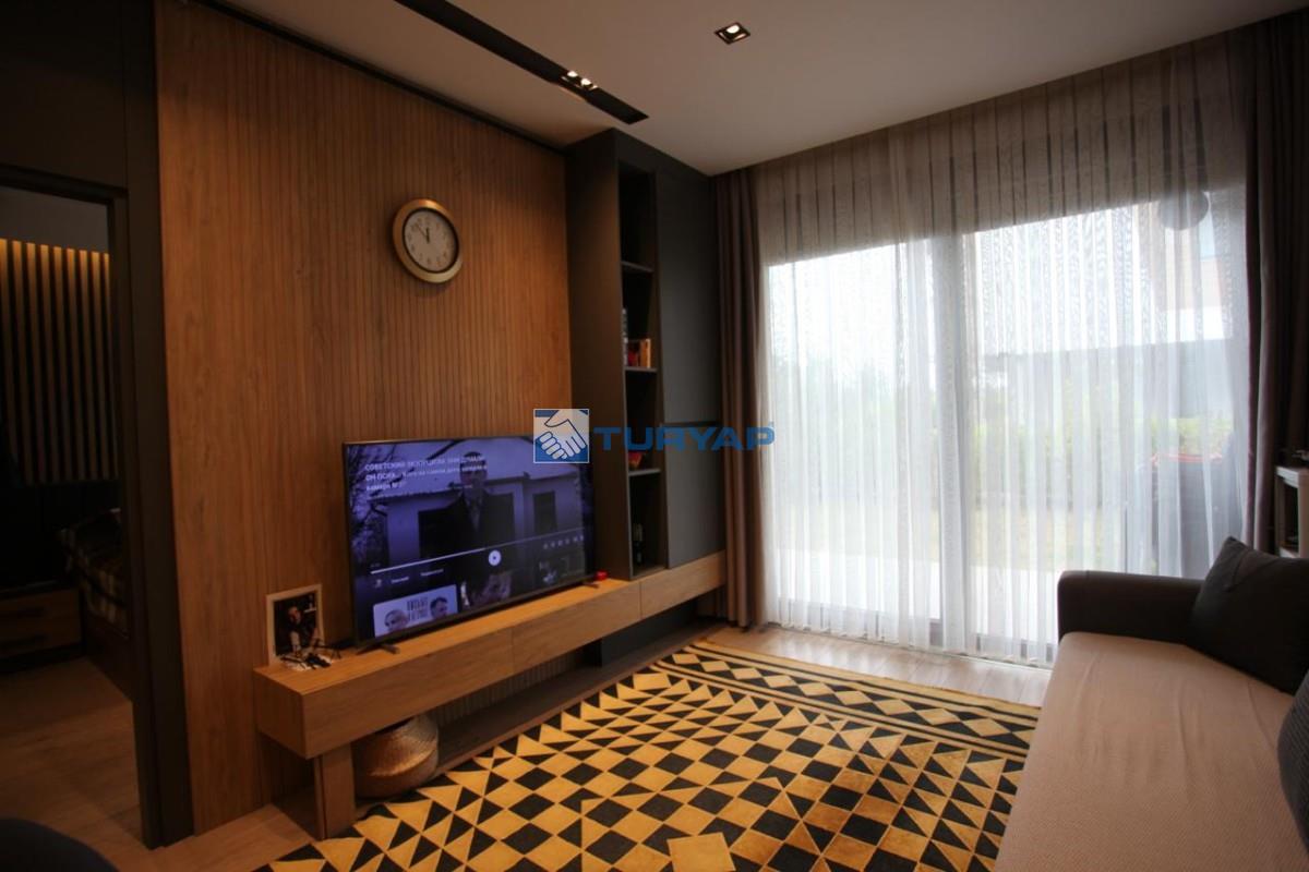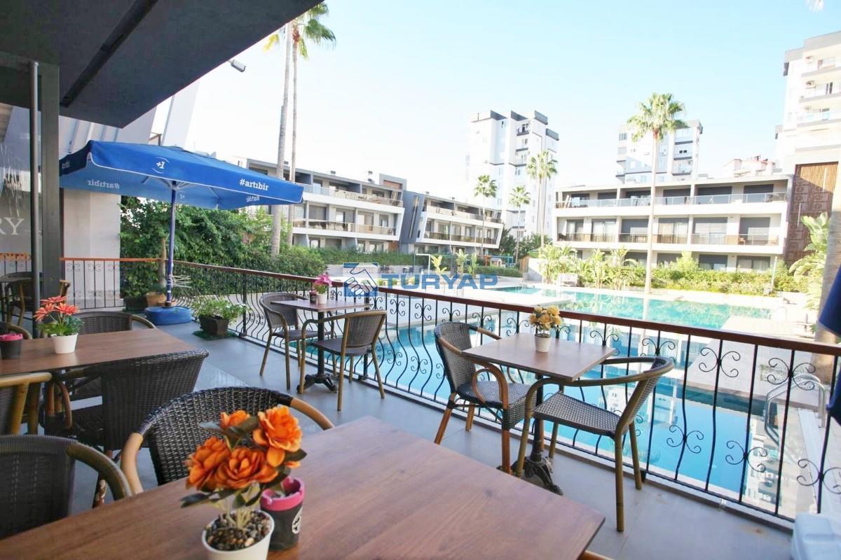Antalya Lara Güzeloba Mahallesin de Tesisler Caddesi Üzerinde 1+1 Lüks Eşyalı Güvenlikli Full Özellikli Sitede 60 m2 Bahçe Kullanımlı 12 m2 Balkon Kullanımlı Satılık Bahçe Katı Köşe Daire