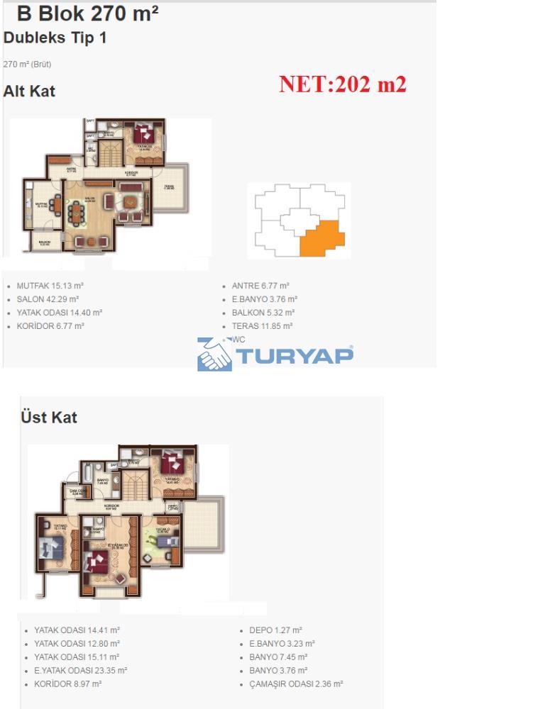İKİNCİ KATI : 2 YATAK ODASI , 2 EBEVEYN YATAK ODASI , 1