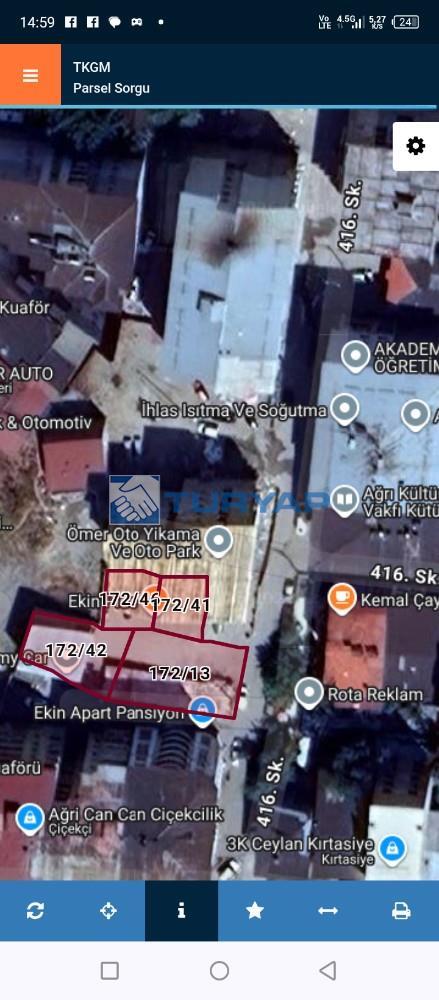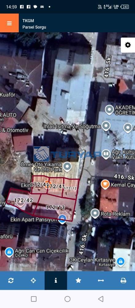 Ağrı merkez Yavuz mahallesi carşı merkezde ekin pide yanıňda bulunan 735 M2 otopark olarak kullanılan 6 kat imarlı yatırımlık arsamız satılıktır.
